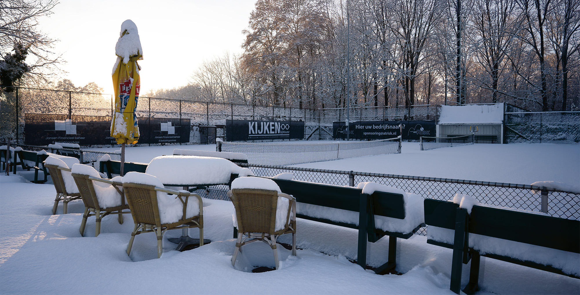 Zoals je gemerkt hebt, heeft het vandaag flink gesneeuwd. Natuurlijk kan je lekker sleetje rijden of sneeuwballen gooien, echter het tennis staat logischerwijs even in de vriezer.