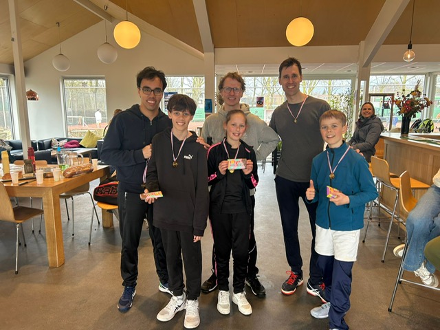 Zaterdag 14 maart was het junior-seniortoernooi. Je meldde je als duo aan, waarvan er 1 boven en 1 onder de 18 jaar is, en minimaal 1 speler van het duo is lid van at Risk.